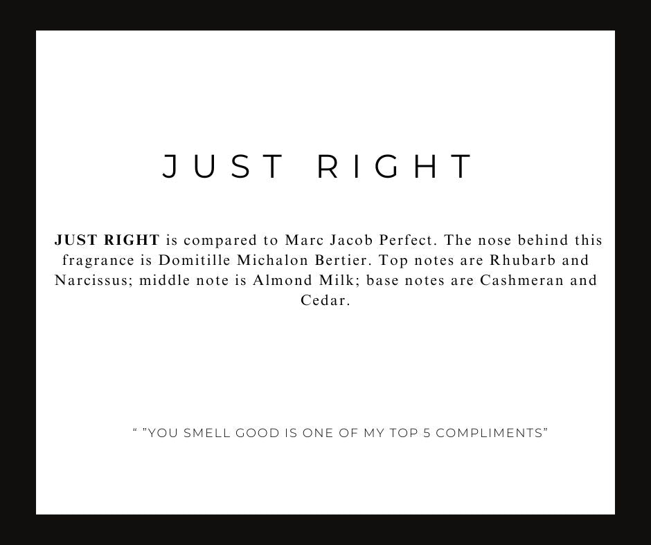 JUST RIGHT scent is inspired by Marc Jacob Perfect.